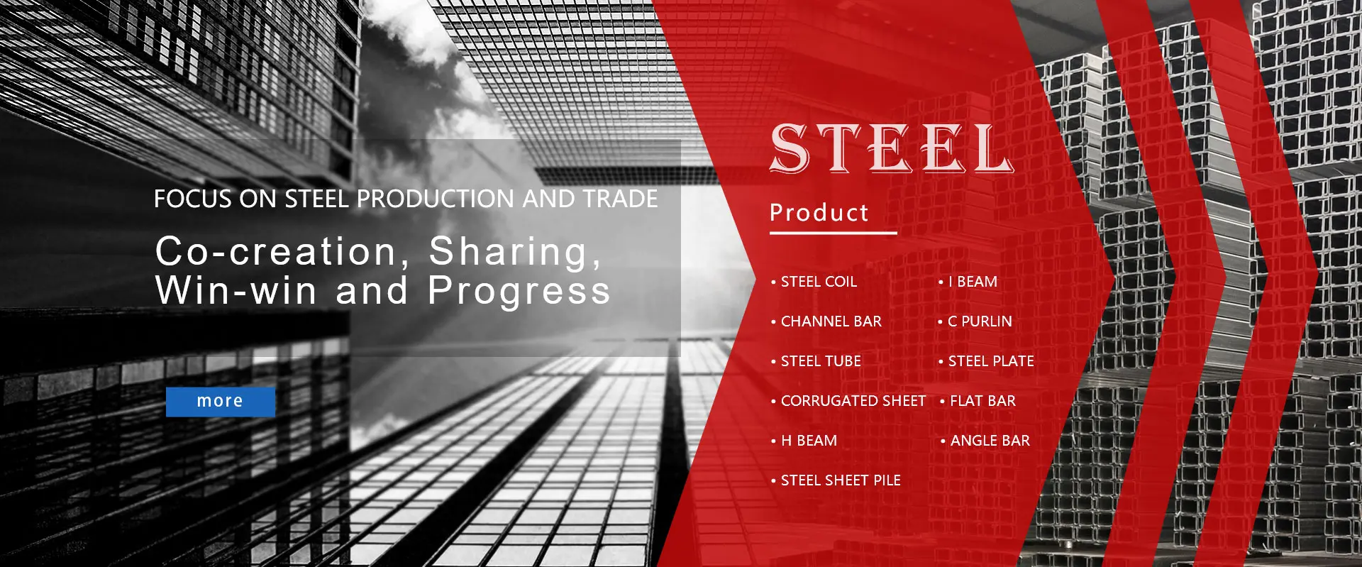 Our main products include angle iron, steel plate, steel pipe tubing, galvanized steel, c channel, corrugated metal sheet, steel bar, seamless pipe and so on.