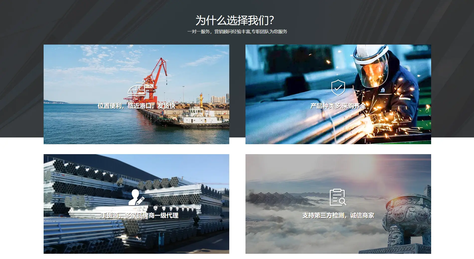 我司一贯坚持“客户至上,质量为先”的经营原则,现已与国内多家大型钢铁企业建立了长期稳定、互利共赢的合作伙伴关系。我们也将竭诚为您提供更周到完善的服务。